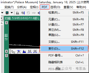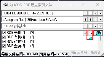 1.待三个软件安装完成后打开【MDI Jade9 中文版】软件,依次点击【PDF】, 【索引】,【⊳】等待索引结束
