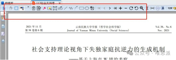 点击附件中的pdf文件,可对文献整体进行阅读,上方操作框具有文本选择、添加笔记、高亮、文本框、铅笔等功能,帮助我们进行文献阅读。![]()