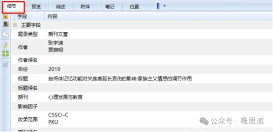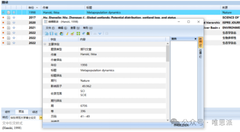 而其他来源的题录,“智能更新”则不大好用,我们可以右击相应题录进入“编辑题录”界面对其信息进行手动校正修改。![]()