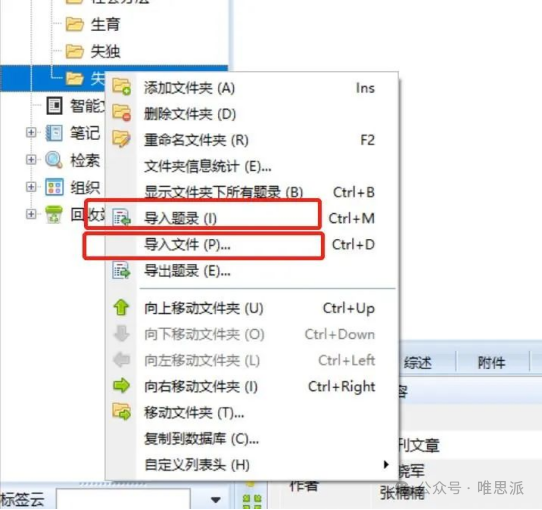 方法1:如果文献都存储在电脑的一个文件夹中,可以直接将文件夹导入:点击题录下的文件夹右键导入文件——添加文件——开始导入。方法3:在知网页面,选择需要的文献,导出Note Express格式——复制到剪切板——返回软件,点击所在文件夹右键导入题录——开始导入。![]()